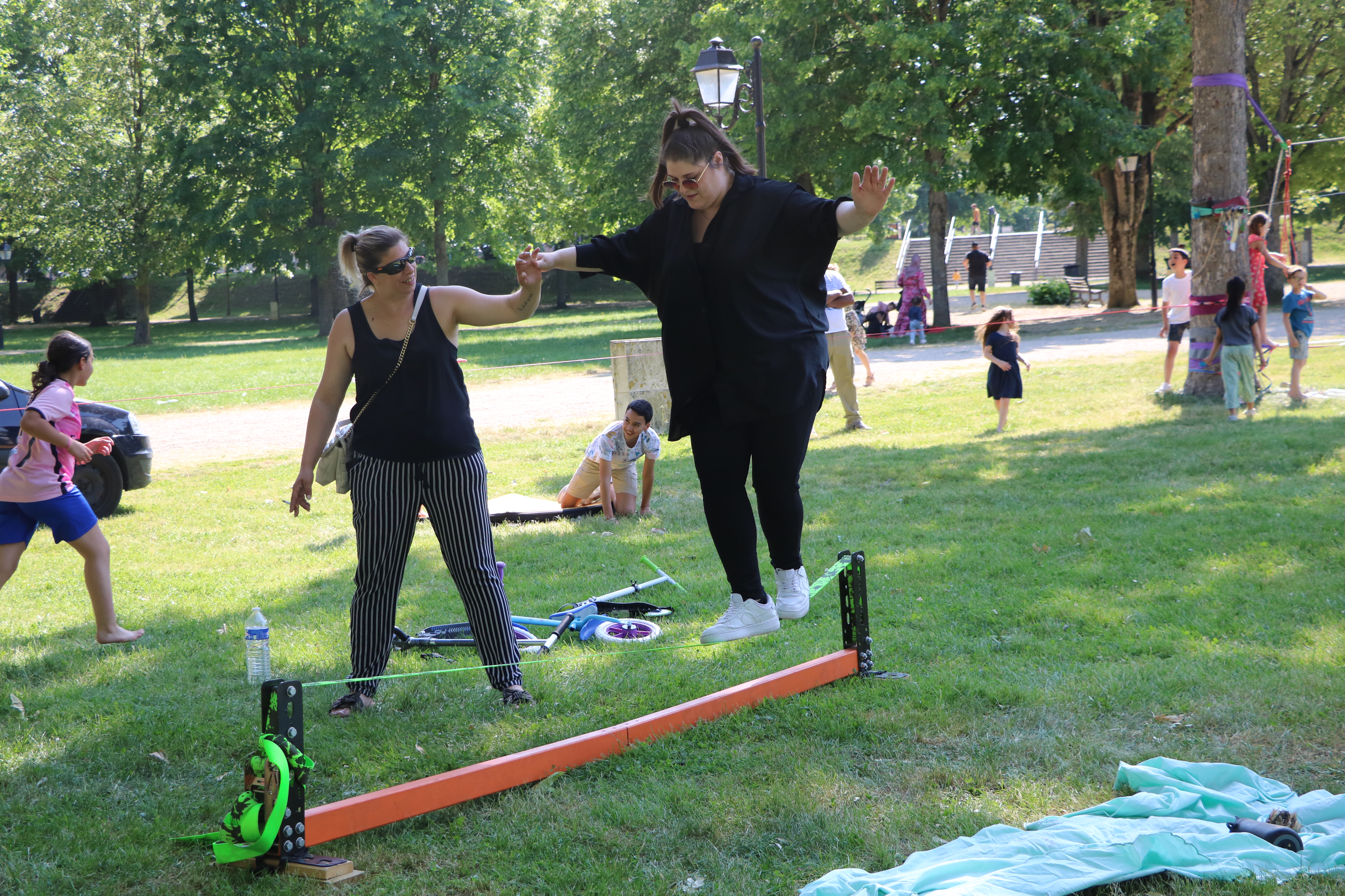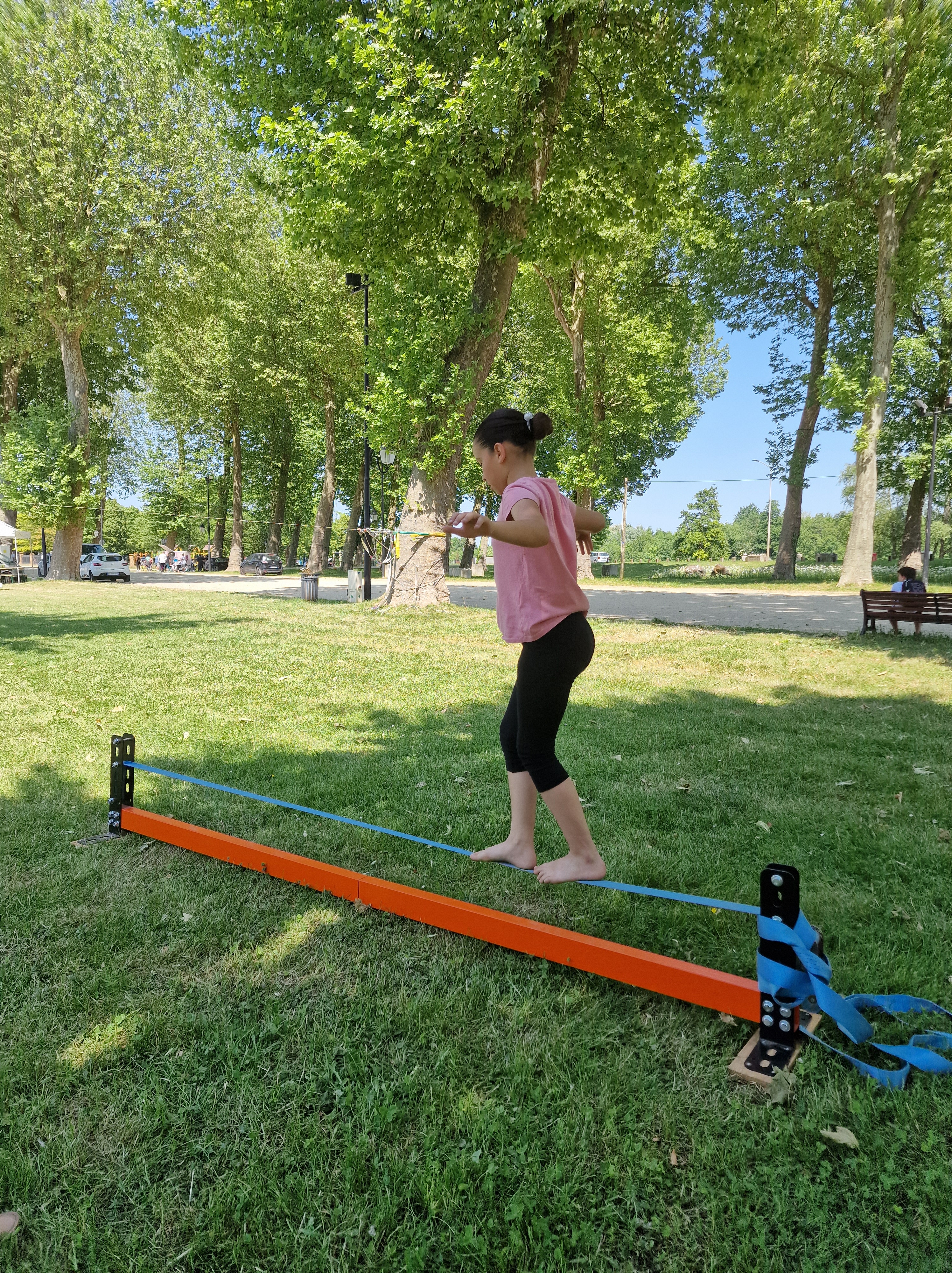 Weekend de slackline avec animation et démonstration pour tous. Des poutres d’équilibre jusqu’à la slackline acrobatique appelée aussi « trickline », tout le monde s’est essayé à la discipline.