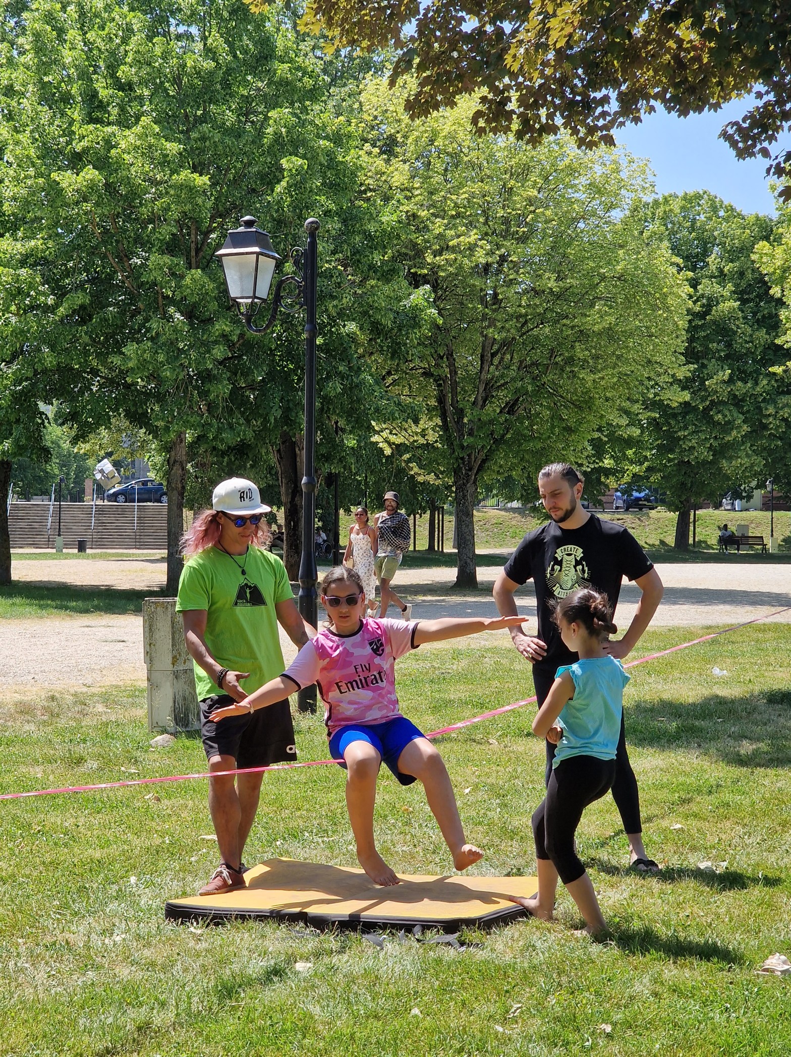 La slackline est une discipline parente du funambulisme qui se pratique sur une sangle. Tu apprendras à tenir en équilibre, marcher, sauter et faire des acrobaties sur une sangle de 2,5cm ou 5cm de large allant de 5m de long à plus de 30m.